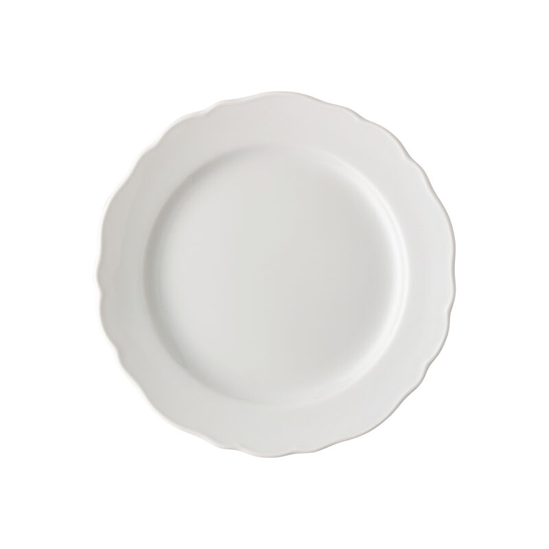 Hutschenreuther Maria Theresia Weiss Teller auf einem Holztisch in sommerlicher Atmosphäre