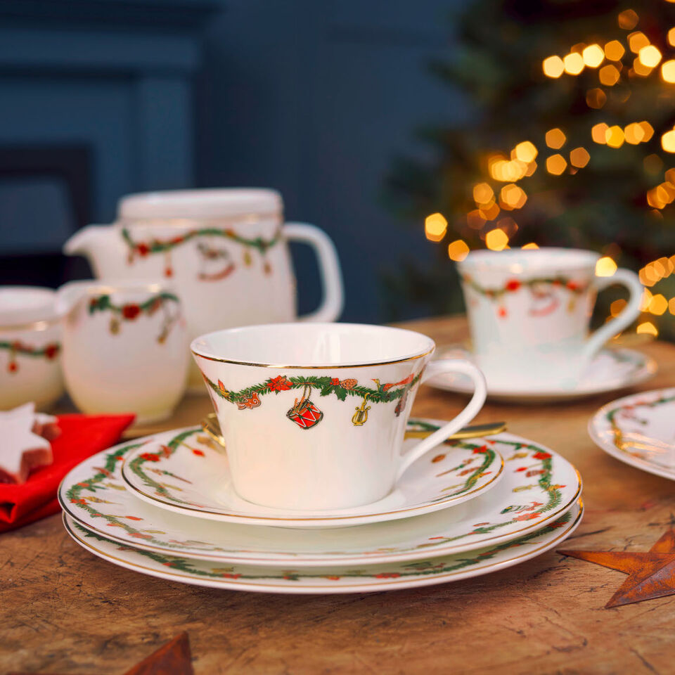 Con le stoviglie natalizie di Hutschenreuther, ogni pausa caffè durante il periodo natalizio diventa un rituale amorevolmente orchestrato, pieno di magia e intimità. I pezzi in porcellana ricchi di dettagli della collezione Hutschenreuther Nora Christmas portano sulla tavola motivi natalizi in filigrana. Si crea così un'atmosfera suggestiva, dal sapore nostalgico, che rende ancora più piacevole stare insieme.