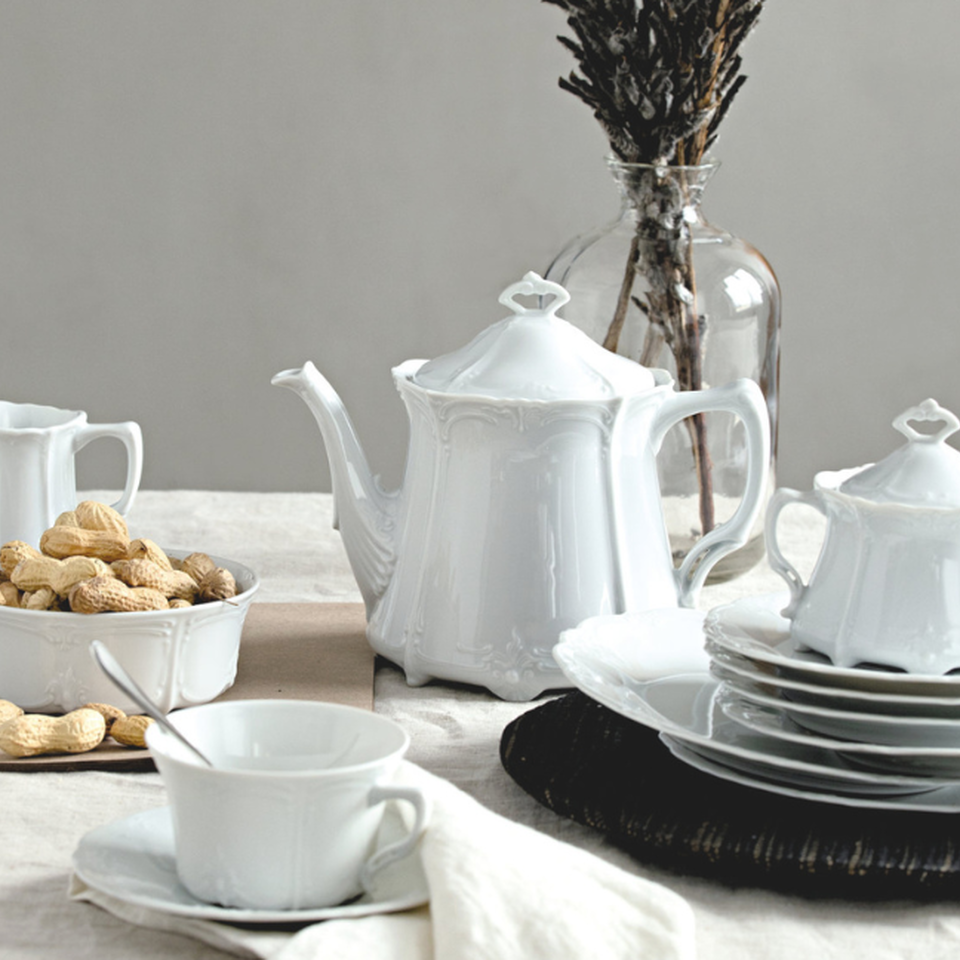 · Classico con un tocco nostalgico: collezioni come Baronesse o l'iconico servizio da caffè Hutschenreuther Blue Onion portano in tavola forme classiche e tradizionali stoviglie in porcellana. Sono perfette per chi cerca un servizio da caffè elegante con un fascino vintage.